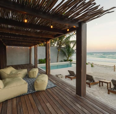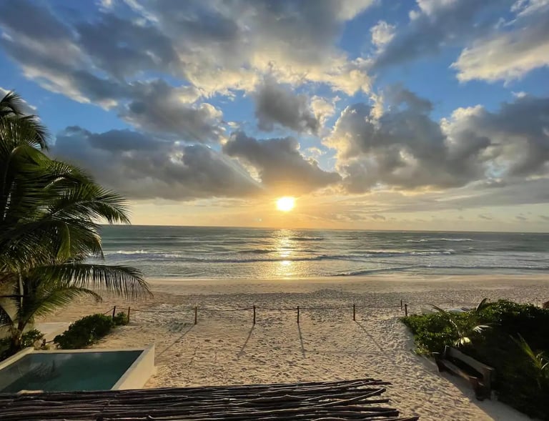 Esta villa está perfectamente ubicada en la zona hotelera de Tulum, cerca de los restaurantes, clubes de playa y bares más famosos de la zona. Puedes disfrutar de la ubicación caminando, ya que hay muchas tiendas y restaurantes cerca o también es muy divertido y cómodo en bicicleta. Si tienes un coche para mayor independencia, hay un estacionamiento dentro de la casa para ti.