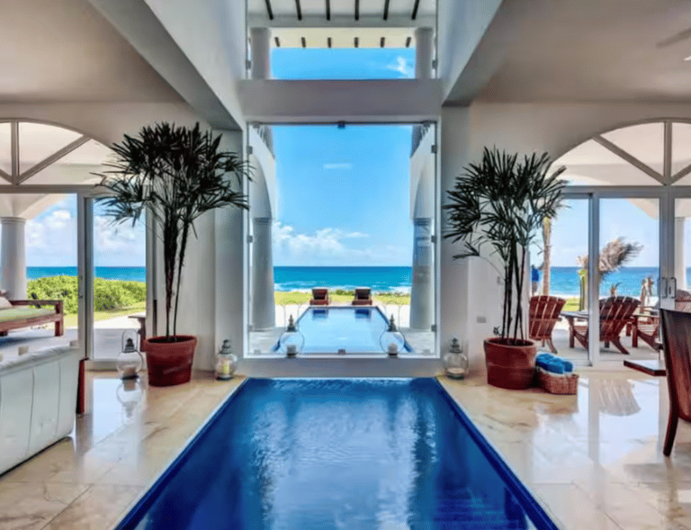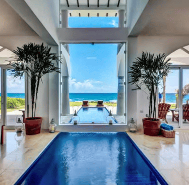 Esta impresionante villa se encuentra frente al mar con acceso privado a una hermosa playa con piscinas naturales.